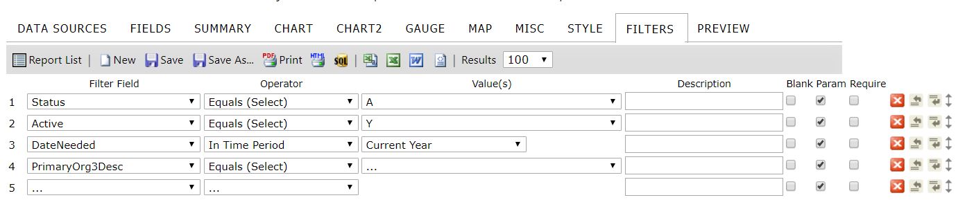- This is the default for the Filters Tab - Operator Column when the option 'Equals (Select)' is selected.
