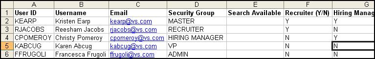 If this field is set to N, then enter in data for the following four options. Any or all of the fields could be set to Y depending on the recruiting responsibility of the user.