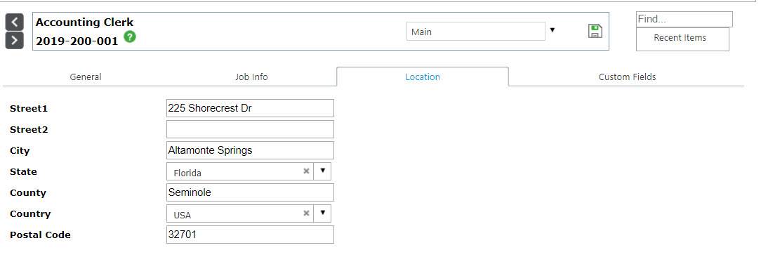 For City, State, Country and Zip Code, if there is just one location for all the jobs, select 'Setup'. This will use the values stored in the Company Setup on the System Setup page. Otherwise, use the drop-down list to indicate which field (location fields on the 'Main', organizational levels or misc fields) are being used to track the location information in the requisition. (Image 3 is provided below for further direction).
