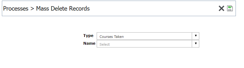 Courses Taken (i.e. historical courses completed by the students listed) - this deletes courses from the Student File > Activity Page > Courses Taken tab.