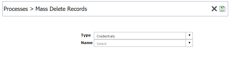 This field displays the type "Credentials" which was already selected. This controls the fields that will display on the rest of the page. If this is not the desired "type" of Mass Add, the user can click the pull-down to select from the other choices.